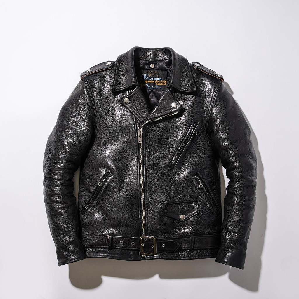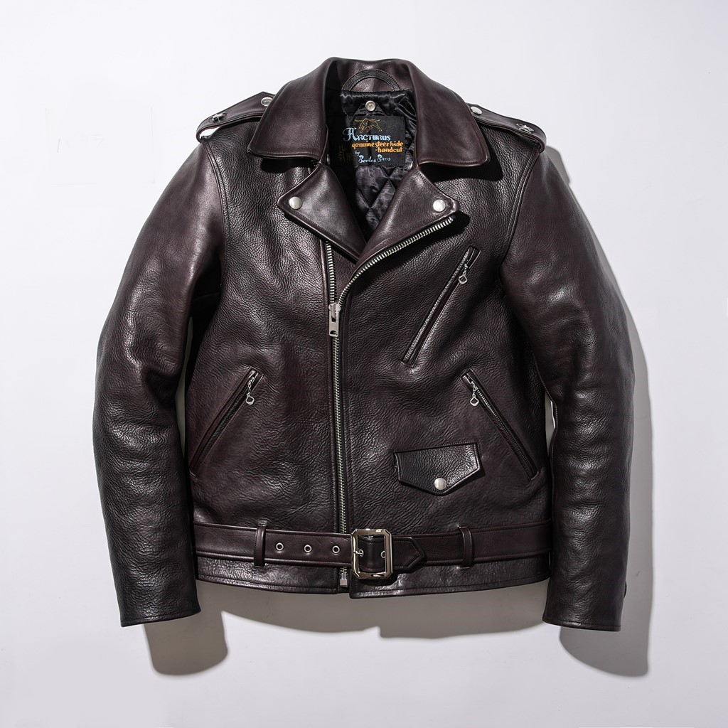 1960年代に存在した傑作ライダースジャケットの前期モデルをトレースした、BOOTES(ボーテス)の新モデル「アークトゥルス」。こちらはイタリア・フィレンツェの名門タンナー「バダラッシ・カルロ」の牛革を使用したモデル。ゆっくりと時間をかけて植物タンニンを染み込ませて鞣していくバケッタ製法の牛革は、目の詰まった牛革らしい、しっかりとした着心地を体感できる。31万9990円