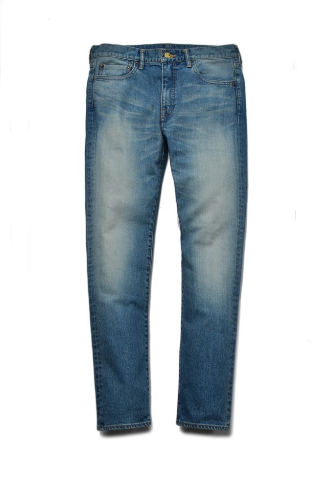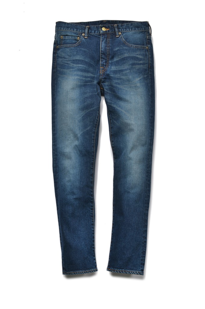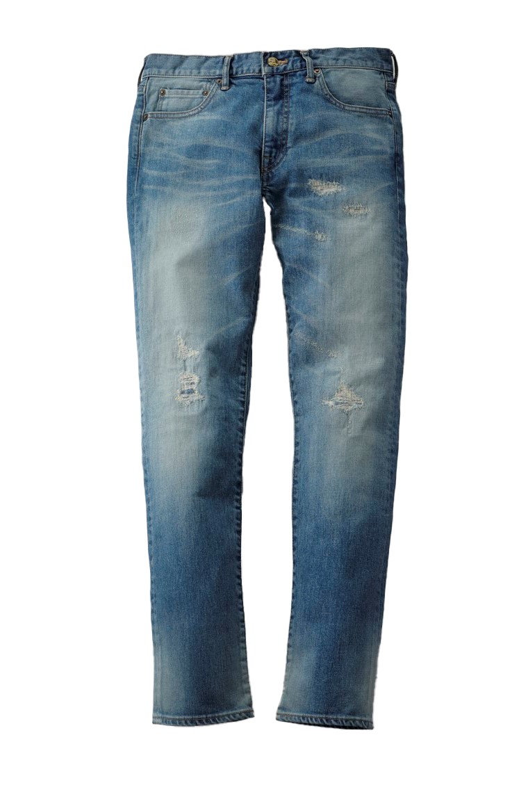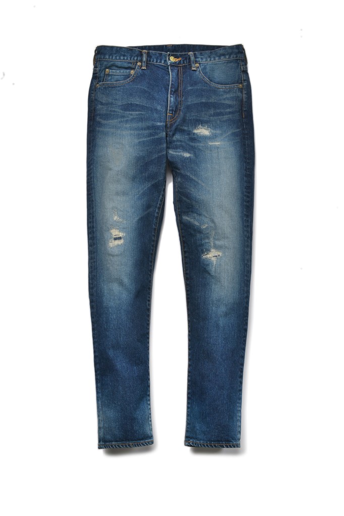 色落ちした濃い目のインディゴにダメージ加工をプラス。いわゆるアメカジ的だが、細身テーパードのシルエットなので、都会的なコーディネイトも得意とする。2万3990円