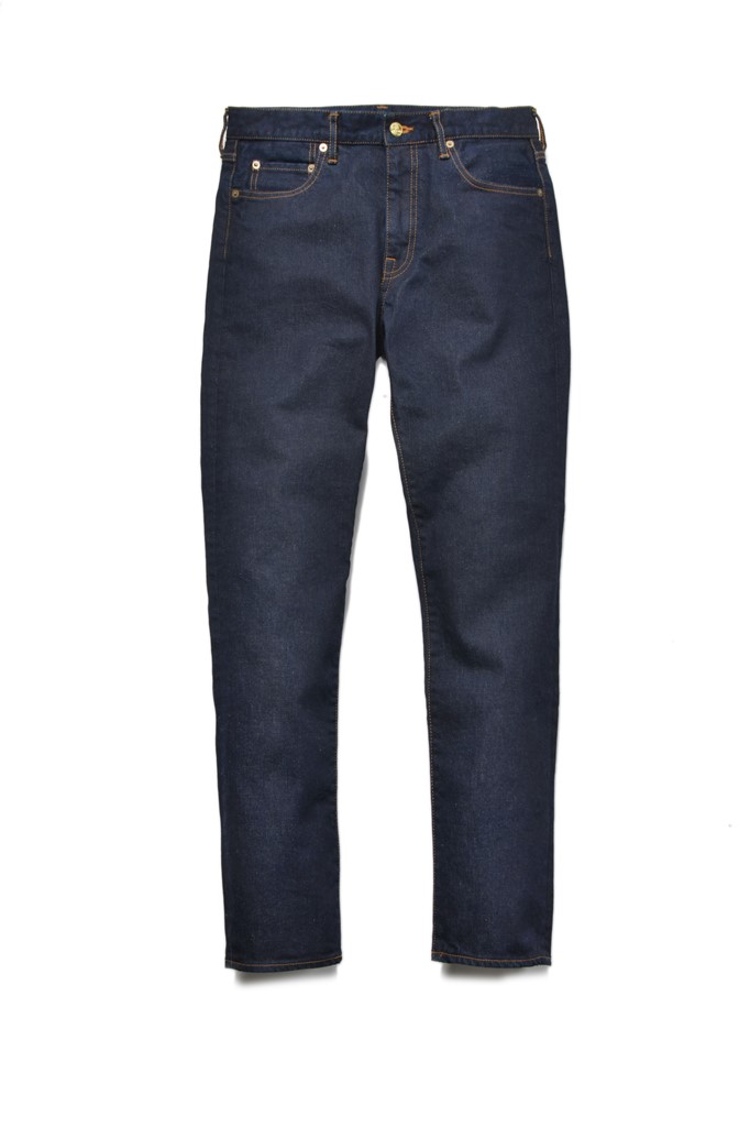 テーラードジャケットに革靴といったスタイルにも合う濃紺。ワンウオッシュで穿き始めから体に馴染む。色落ちさせて自分だけの1本に育てていくのも楽しめる。1万5990円