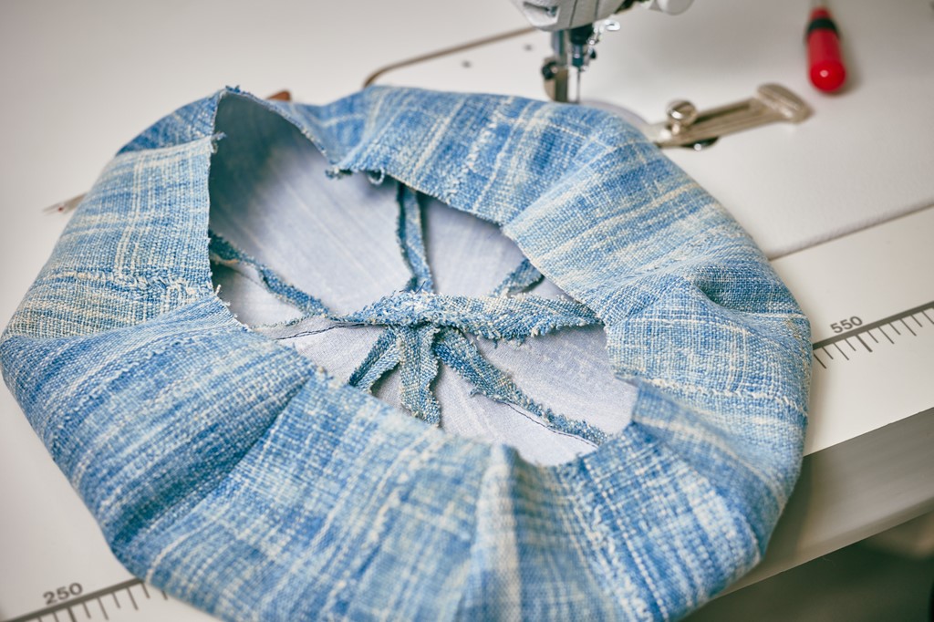 これは、入手困難なヴィンテージ生地、時にはヴィンテージのウエアやストールなどを解体して生地にし、それを自社アトリエにて職人が裁断から縫製まですべての工程を行って帽子に仕上げるという、画期的なプロジェクト。菊地さん曰く、海外でこのような取り組みをしているブランドは稀に存在するというが、日本で帽子ブランドが手掛けるのは初の試みになるそう。