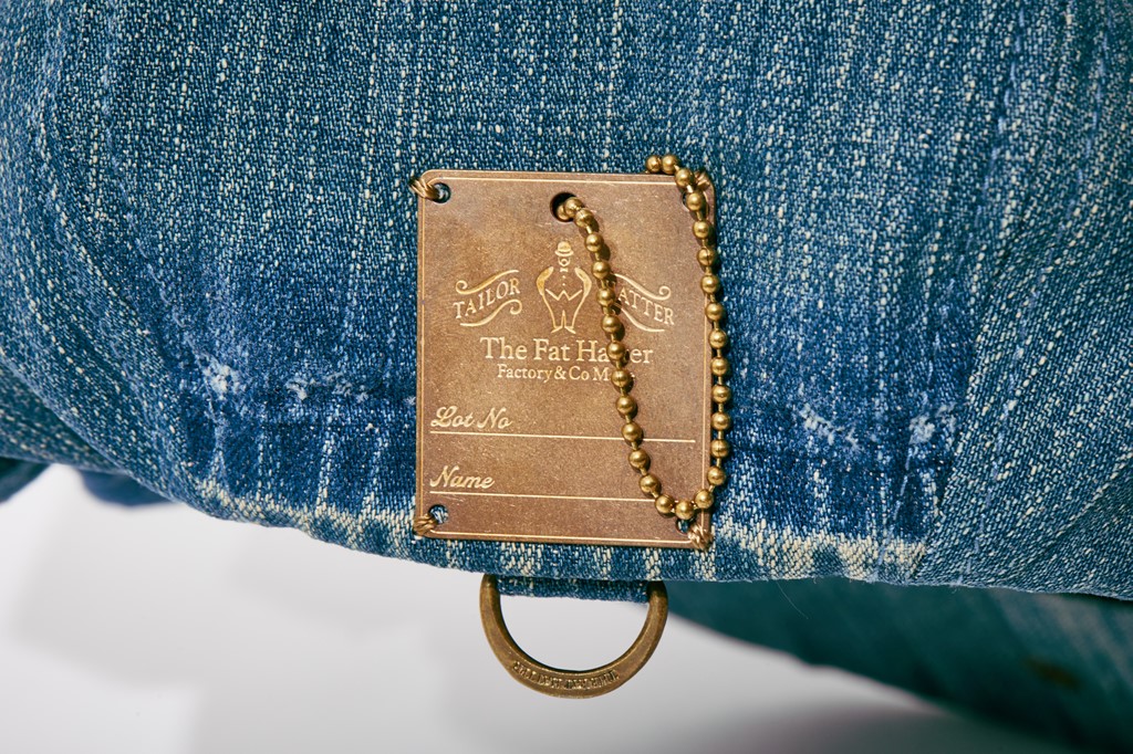 バックサイドには、FACTORY & CO. のドッグタグが付く。この縫製を外すとキーホルダーのようにも使うことができる。こちらもエイジング加工済み。