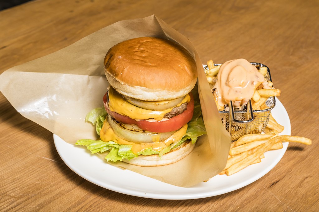 それが「アニマルダブルチーズバーガー」。この名前にピンときた人は相当の通。これはカリフォルニアの某人気チェーン店の人気裏メニュー、アニマルスタイルをオマージュしたもの。ボリュームたっぷりのパテに溢れんばかりのチーズ、グリルされた甘いオニオンとマスタードチーズのハーモニー。そしてサイズもアメリカン。まさにカリフォルニアのあの味がここに!
