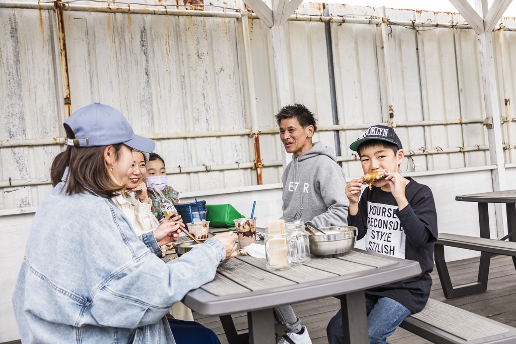 施設内にはBBQ施設はちろん、大型のデリバリーバンの後部を子供専門の遊び場所としたスペースなども確保。自然と子供同士が仲良く遊び回る姿が印象的だった。豊富なBBQメニュー以外にも、なんとコストコで購入した食材をそのまま持ち込むこともOK。家族連れ同士、仲間と休日を過ごすには最適なスペースとなっている。