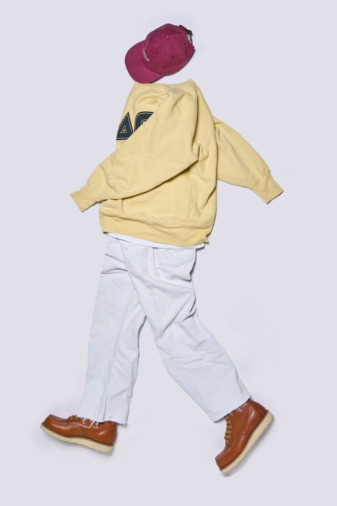 スウェットシャツと白パンやホワイトジーンズの着こなしなら革靴でもいいけど、実は#875でもこんなにオシャレにまとまる。