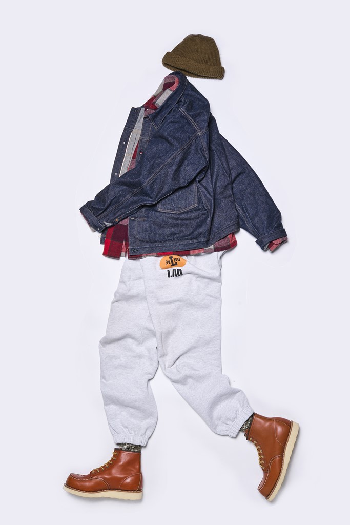 ースタイルになりがちなので、スウェットパンツで遊びをプラス。