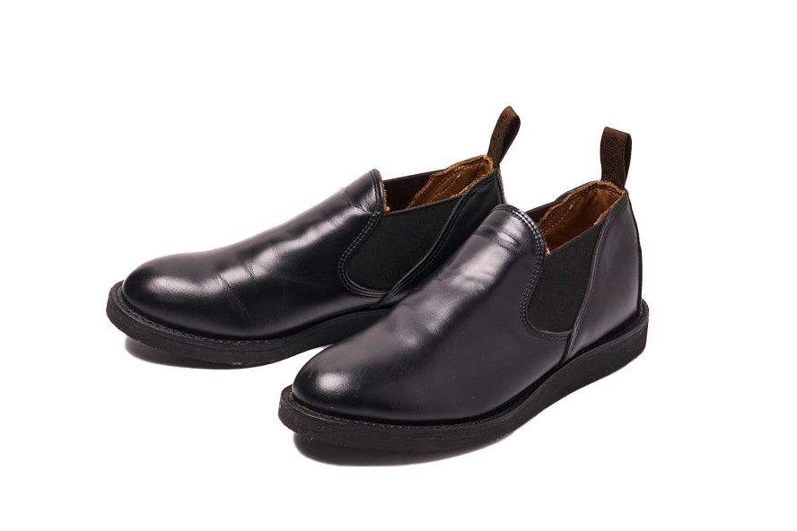 1954年に誕生し、制服を着て働く公務員のサービスシューズとして誕生したポストマン#101と、1920 ~’30年代にルームシューズから外履き用に昇華したロメオを組み合わせた、レッドウィングの定番オールブラックシューズ。4万2350円