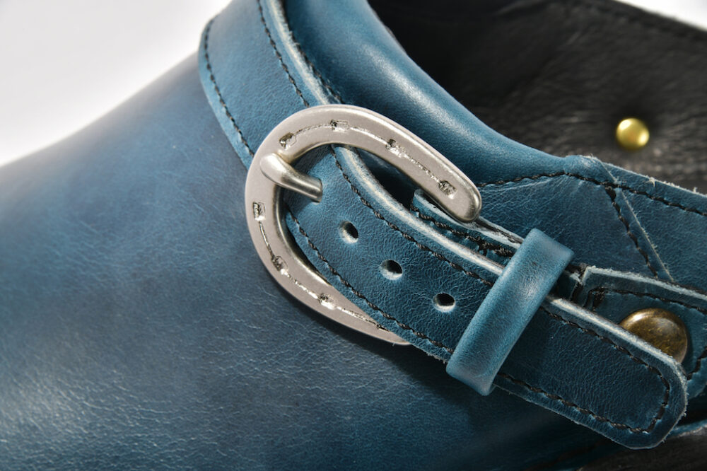このストラップはカジュアルに履きたいときにはつま先側に倒し、しっかりと履きたいときにはカカト側に倒せばバックストラップとなって、長時間の歩行も可能な2ウエイ仕様になっているのもうれしい。ソールは軽量でクッション性も高いビブラム社のクレッターリフトソールを採用し、レザー製フットベッドの下にも専用のインソールクッションが入っているので疲れ知らず。