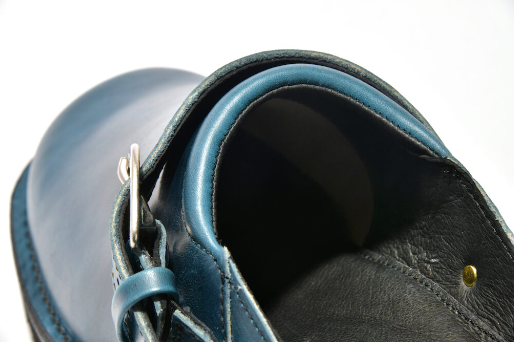 ネイビーブルーのオイルドレザーに質実剛健な作りと疲れ知らずのクッション性を持った逸品。数量限定での受注生産なので、迷う時間はないぞ。