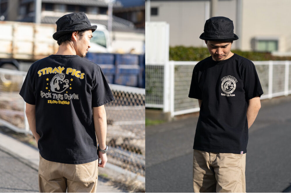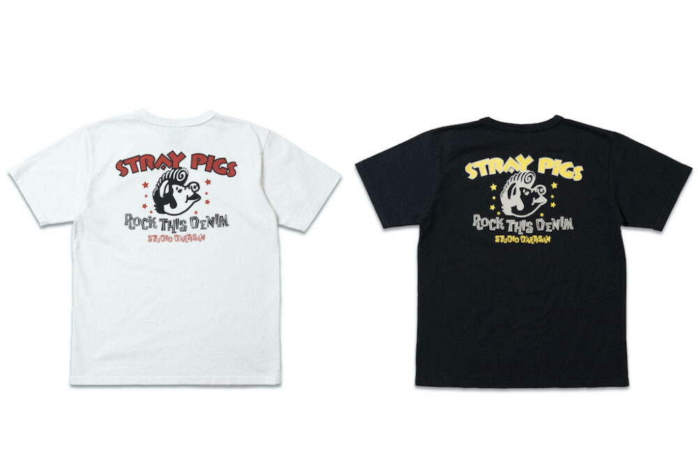 もちろんダルチザンならではのひねりの利いたグラフィックは健在。ダルチザンのマスコットキャラクターである豚のインディがもしも1980年代にネオロカビリーバンドを組んでいたら……というのがそのストーリーだ。STRAY PIGS(野良豚)と名付けられたこのバンドはローグス別注でしか出会えない。