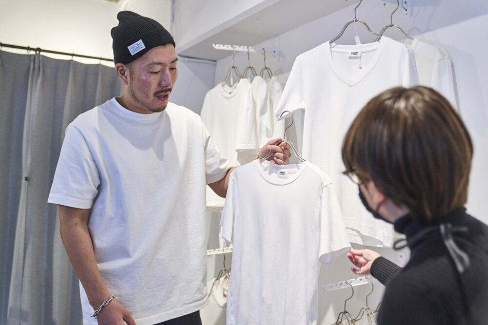 「そう。そんな“白T迷子”の人って多い。だからこそ僕が必ず接客して、お客様の好みや悩みを聞きながら、理想の一枚と出会うお手伝いをしているんですよ」
