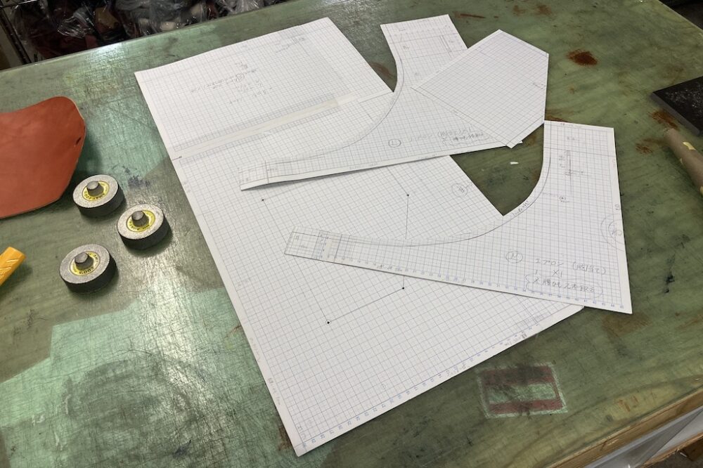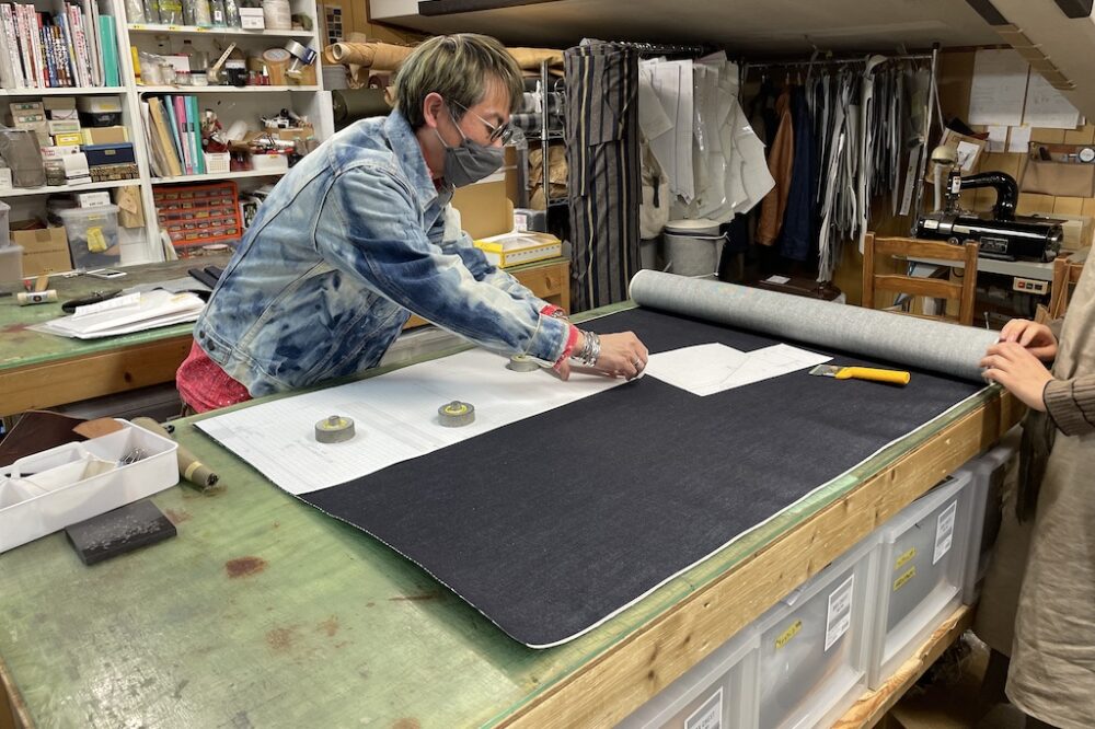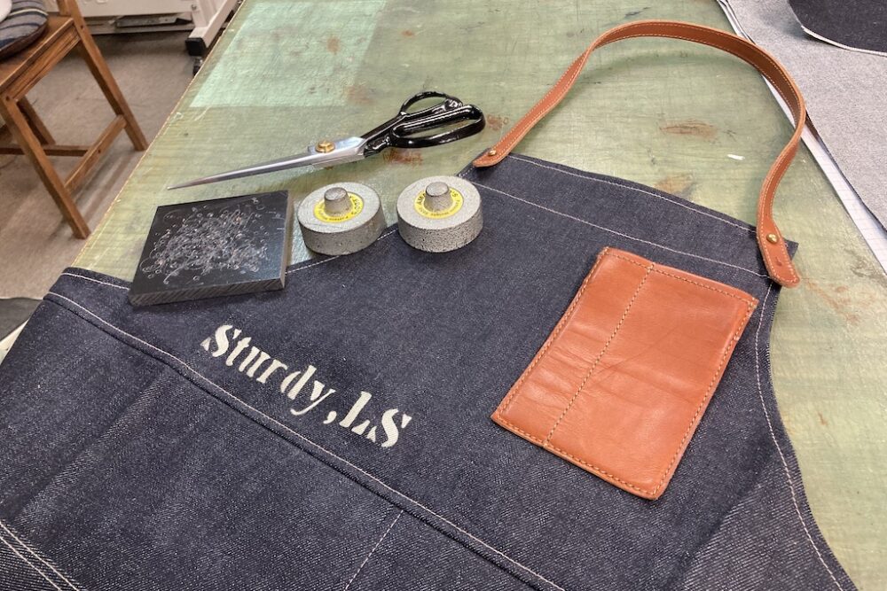今回体験入学で製作するのはデニムとレザーを使ったエプロン。通常は1回の受講料が2時間なので、2時間でできるところまでやり、完成するまで何度も受講するというのが基本になる。