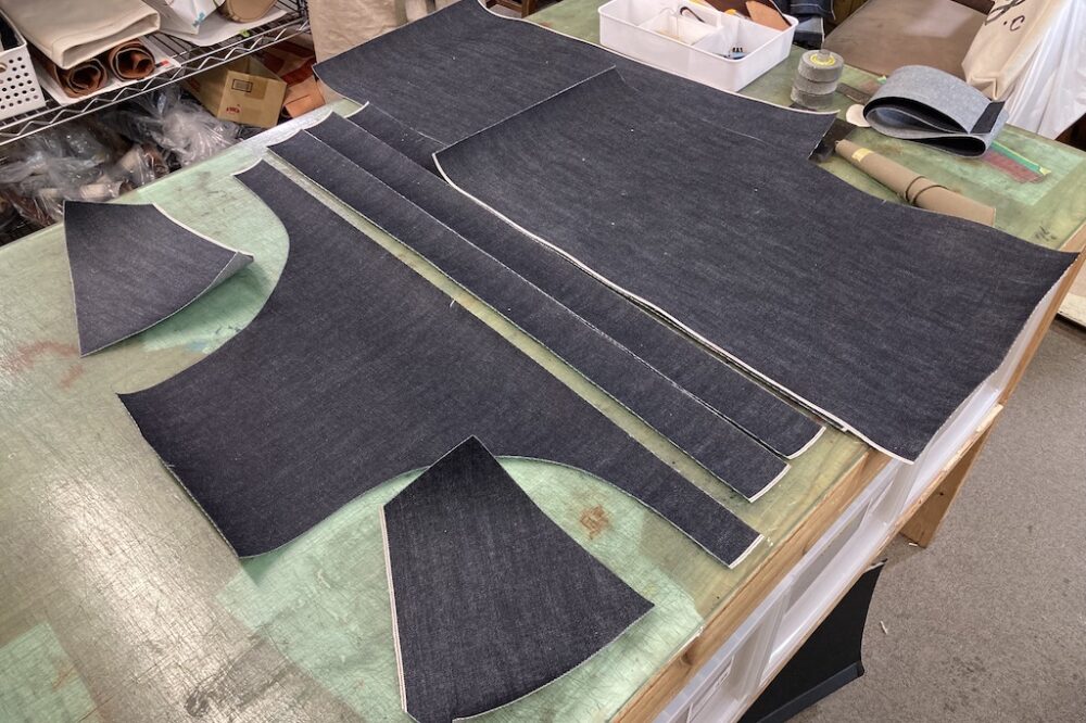 今回はデニムの裁断まで。使ったのはデニム生地なので多少裁縫を経験したことがある人であれば大きな失敗をすることはまずない。ただし、普段趣味程度でしか裁縫をしない小池でも、ここまででけっこうな疲労感(笑)。慣れないことに挑戦するのは楽しいけれど、それなりに疲れることを知る。次回はさらなる下準備へ!!