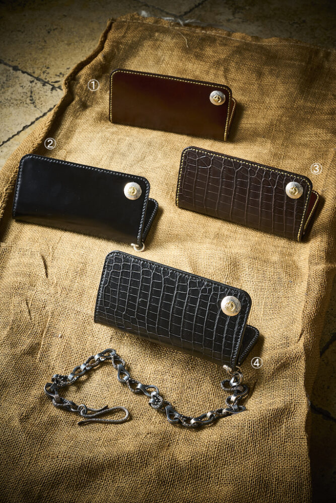 久しぶりの新作ウォレットは、馬革の中でも臀部の一部からしか取れない希少さと圧倒的なキメの細かさから “革のダイヤモンド” とも称されるコードバンと、大ぶりで美しいうろこを持つ部分のみを厳選した最高級のクロコダイルの2種。質感の高さと使うごとに増す風合いはまさに一生モノと呼ぶにふさわしい。