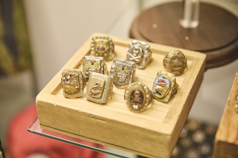 ボリューミーで意匠が細かいメキシカンリングもマーケットの注目アイテムの座に返り咲くのか? 各所で目をひいた。