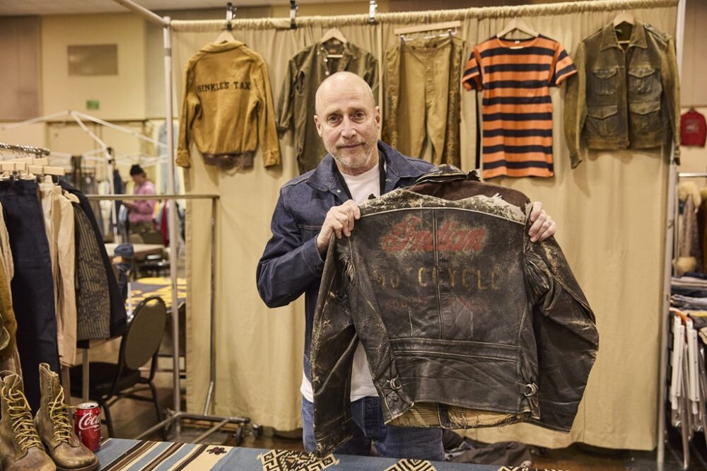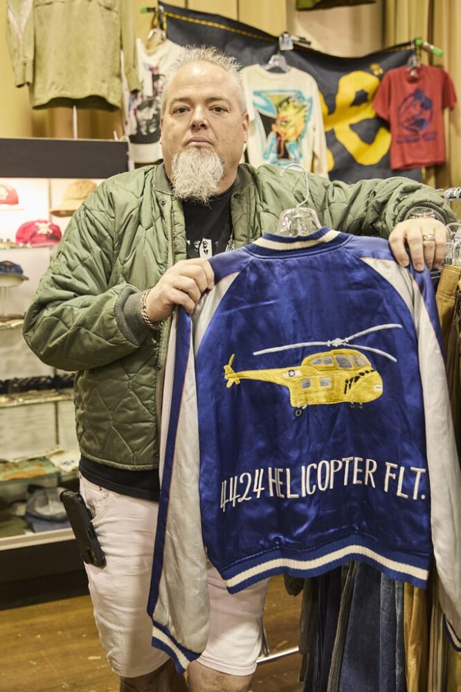 主催者のヴィンテージプロダクションズオーナー、ボブさん。「これはスペシャル」と言って出したのがセルフオーダーカスタムのスーベニアジャケット。