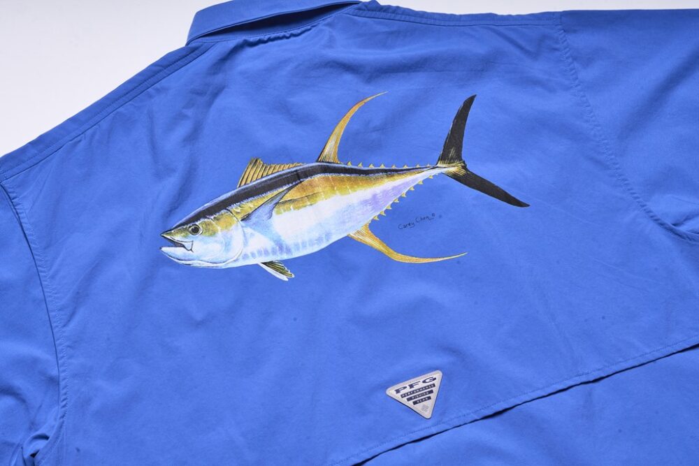 コロンビア的な解釈で展開するアロハシャツ。背中に大きくキハダマグロがプリントされている。9900円(コロンビアスポーツウェアジャパン TEL0120-193-803)