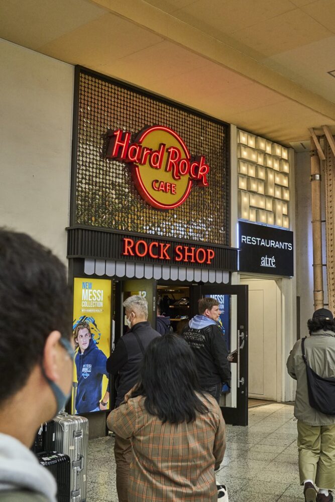 この日のハードロックカフェの上野東京は中央の通路を開けて両サイドに大行列という混みっぷりだった…… ハードロックカフェの横にはお馴染みのロックショップもある。Tシャツや雑貨などはここでGETできる。