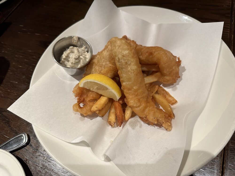 フィッシュ&チップスもオーダー。ハードロックカフェ発祥のロンドンの名物。1480円