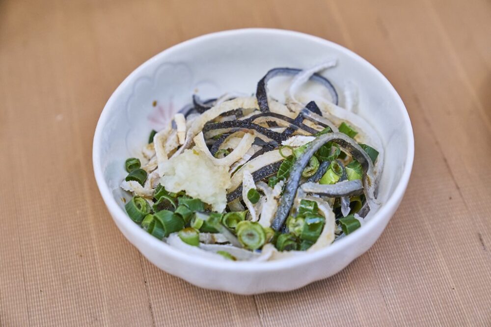 これもお酒の肴に最適なフグ皮ポン酢。こりこりした食感もよかった! 520円