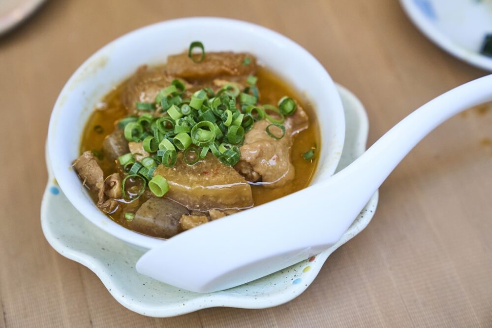 自家製の海老油を使っているというもつ煮込み。こういうところでは鉄板メニュー。450円