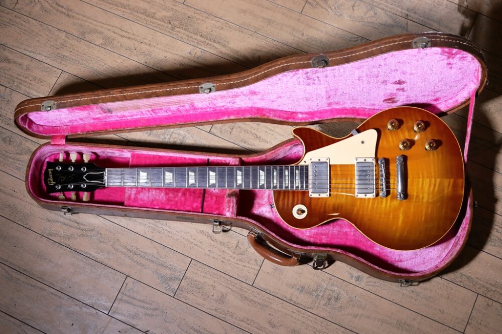 エリック・クラプトン、キース・リチャーズ、ジミー・ペイジなど名だたるギタリストが手にしたことから、ヴィンテージ・ギターの中でもトップ・クラスの人気を誇るサンバースト・フィニッシュのレスポール・スタンダード。1958〜’60年までの間にわずか1,400本ほどしか作られず、5千万円を超える個体も少なくない。特に美しい杢目が浮き出たレスポールは評価が高い。