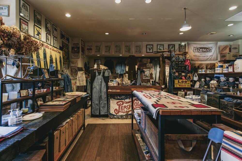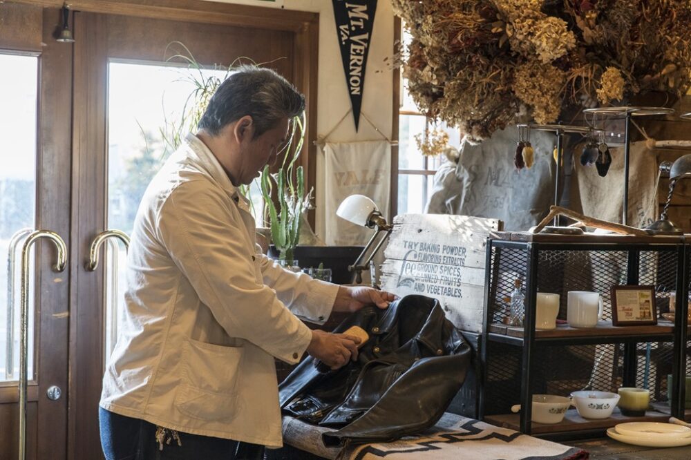 怪我を理由にバイクのカスタムを止め、自身の追い求めている旧きよきアメリカのワークウエアを中心としたヴィンテージや雑貨、そして現存するアメリカブランドを集めたノックオンウッドジェネラルストアを15年ほど前にオープンした。そのため同じ店舗であるが、2つのショップ名を掲げているのだ