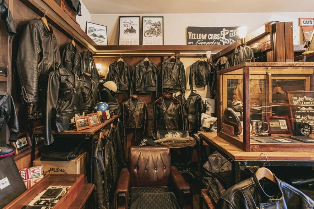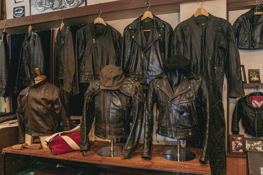各務さんがカスタムショップを営んでいた頃から取り扱っているラングリッツレザーズは、新品はもちろんのこと、希少なヴィンテージも並び、圧倒的なラインナップである。