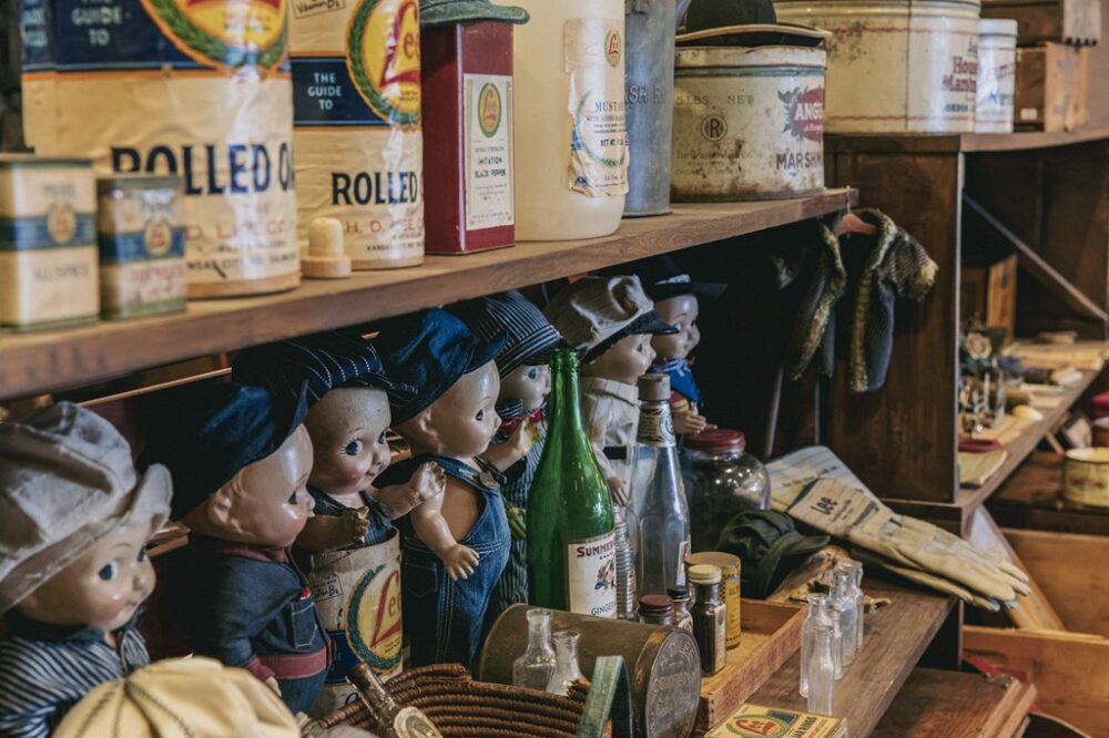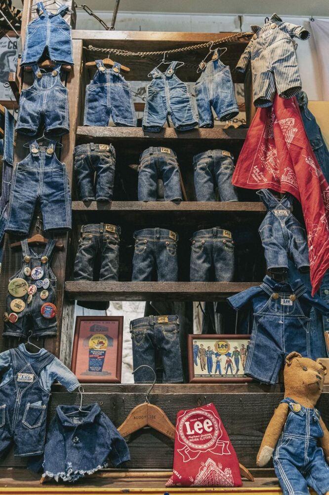 アメリカを代表するデニムメーカーであるリーが食品などを取り扱っていた時代の貴重なパッケージなども販売されている。下のバディ・リーも売り物というから驚きだ。