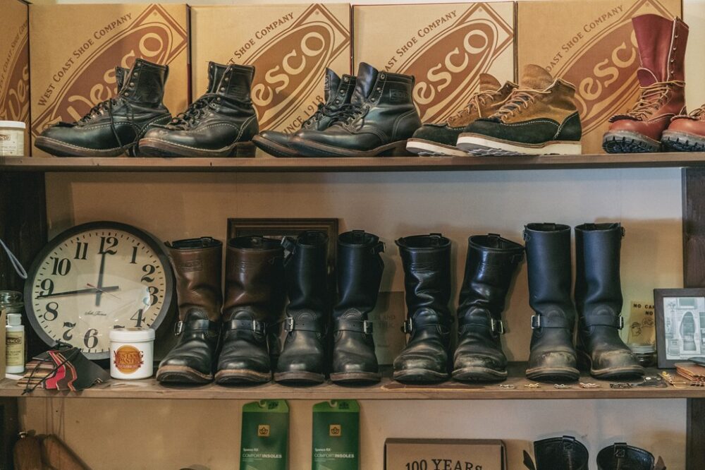アメリカを代表するワークブーツメーカーであるウエスコも扱っており、カスタムオーダーすることが可能。ディスプレイされているのは、エイジングサンプルとなっている。