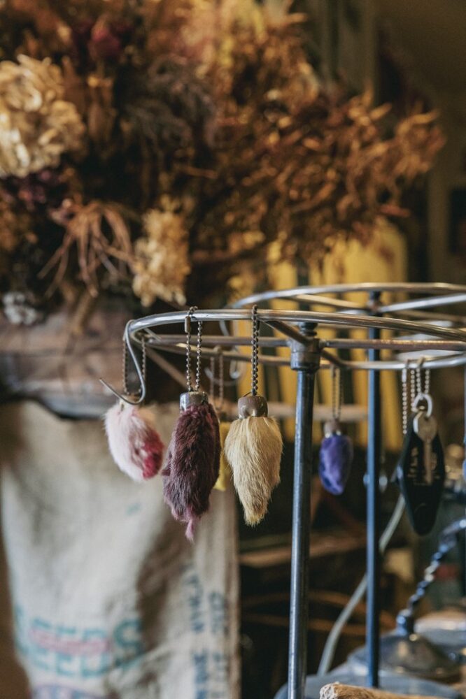 戦後からアメリカンバイカーたちのお守りとなっているラビットフットは、すべてヴィンテージ。ディスプレイされている什器は、オリジナルで制作したというからおもしろい。