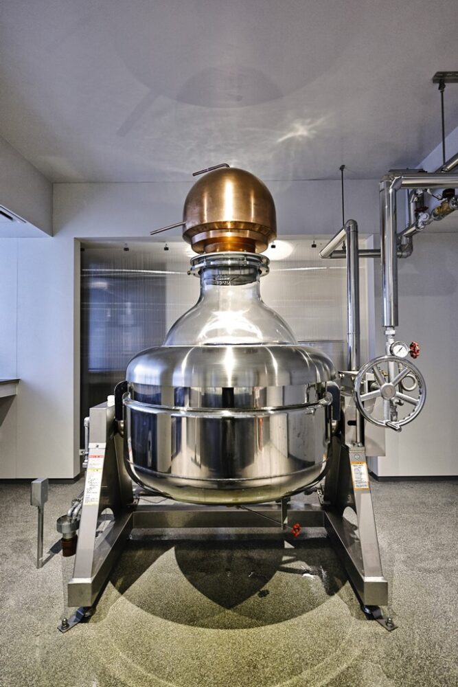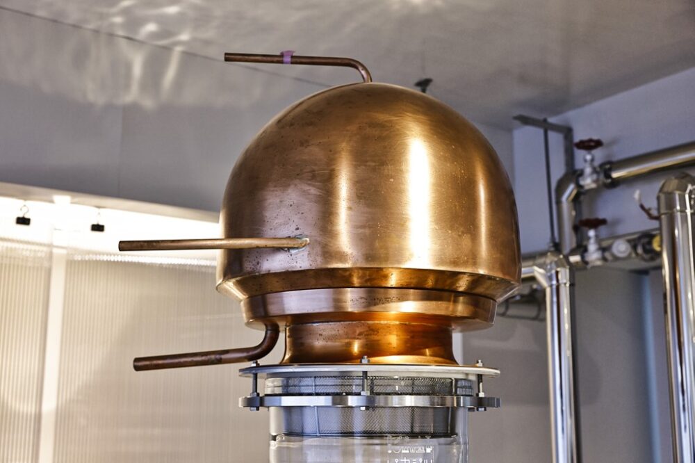 2023年春に清澄白河にオープンした『深川蒸留所』。オリジナルのクラフトジンを蒸留しているが、ここで稼働するのは、巨大なフラスコを採用したオリジナルの蒸留器。まるで理化学の実験装置のような佇まいだが、その理由は蒸留所の成り立ちが大きく関係している。