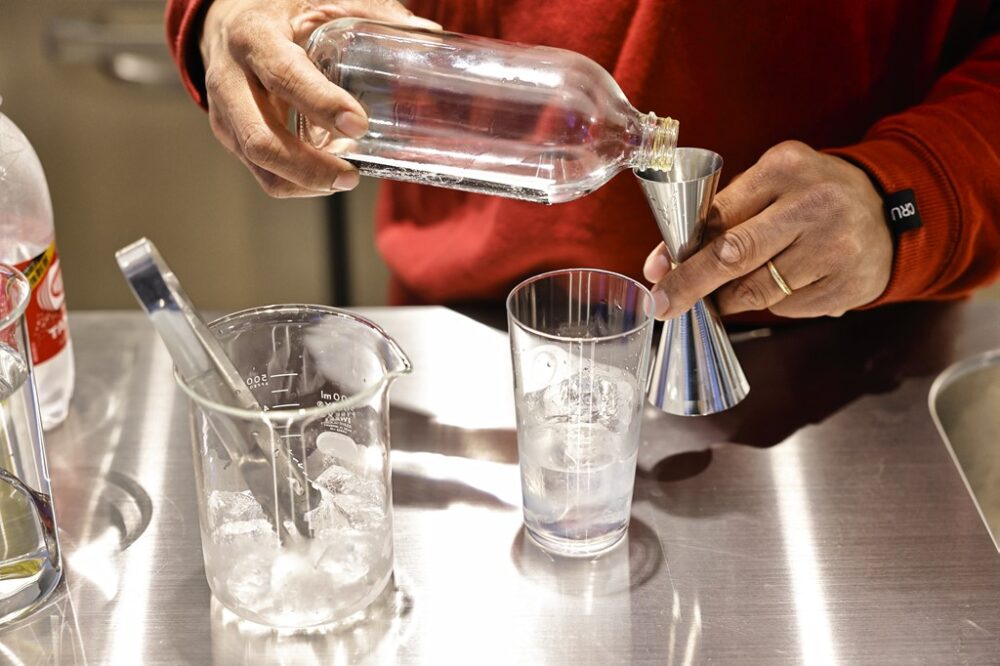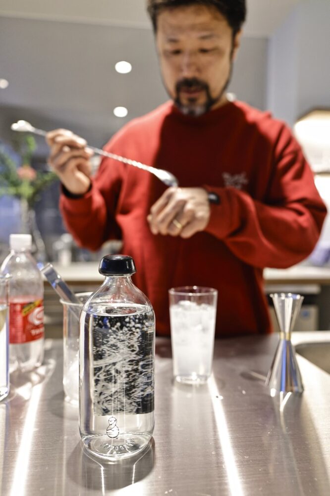 「作り方は簡単。ジン、トニックウォーター、ソーダ水を、1:1:2で割るだけ。その配分もあくまで目安なので、お好みで」