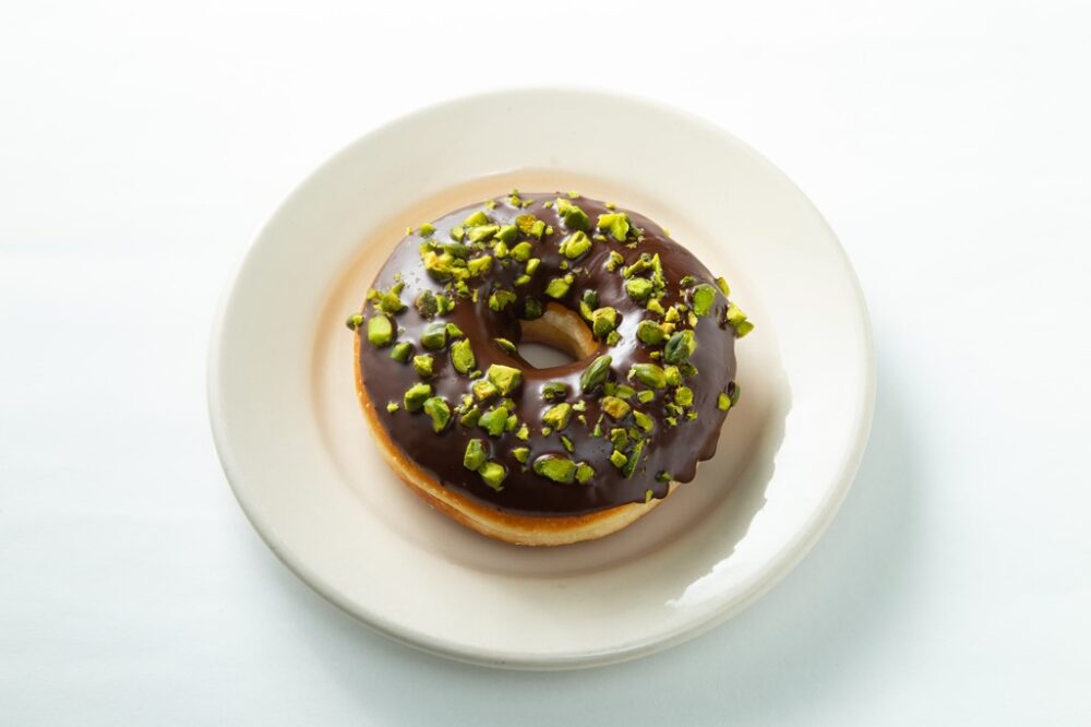 あらゆるデザートに使われ、大人気のピスタチオをローストしてチョコレートにトッピング。チョコレートの風味とピスタチオならではの香ばしい風味は合わないわけがない。食べ応えもあり、いま注目株のドーナツ。390円