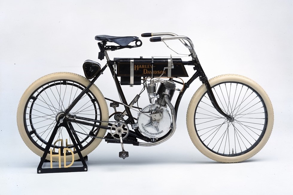ハーレーダビッドソンとして記念すべき1号機。409㏄の単気筒エンジンを搭載しミッションはなく、ペダルでのエンジン始動となる。