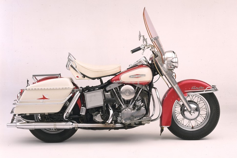 今でも人気のショベルヘッドエンジンを搭載したビッグツインモデルとして登場。他社に対抗した技術の集大成的なモデルだ。