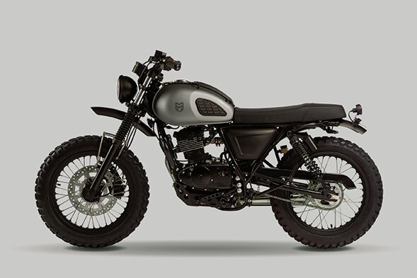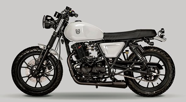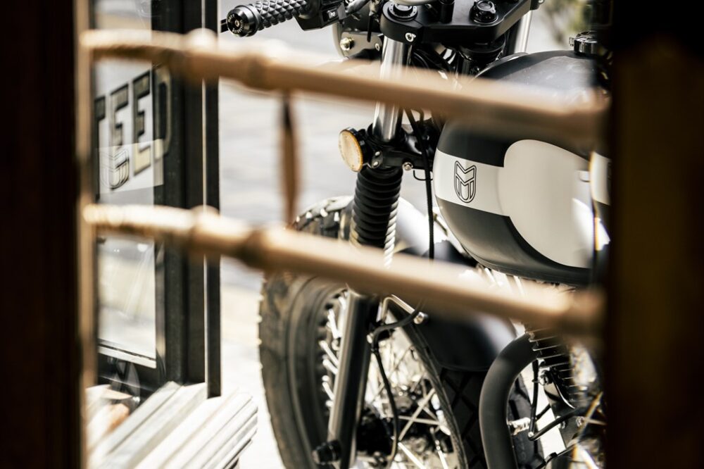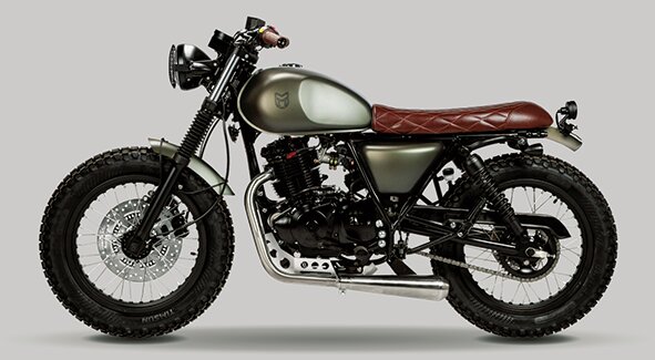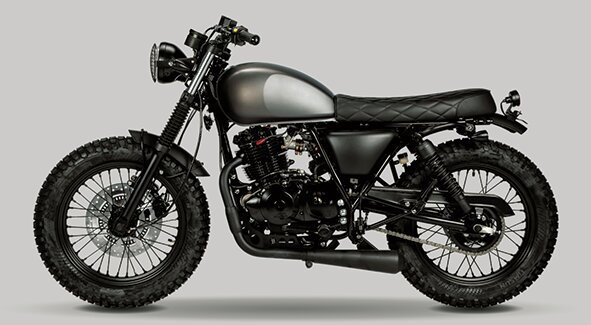 新作のGT-SR250は、マットモーターサイクルズのバイクの中でもっともハイスペックなモデルのひとつ。250㏄のシングルエンジンを搭載し、低重心で大型タンク、ワイドなタイヤを装備したオールラウンダーとなっている。カラーもマットブラックで街中に映える印象だ。
