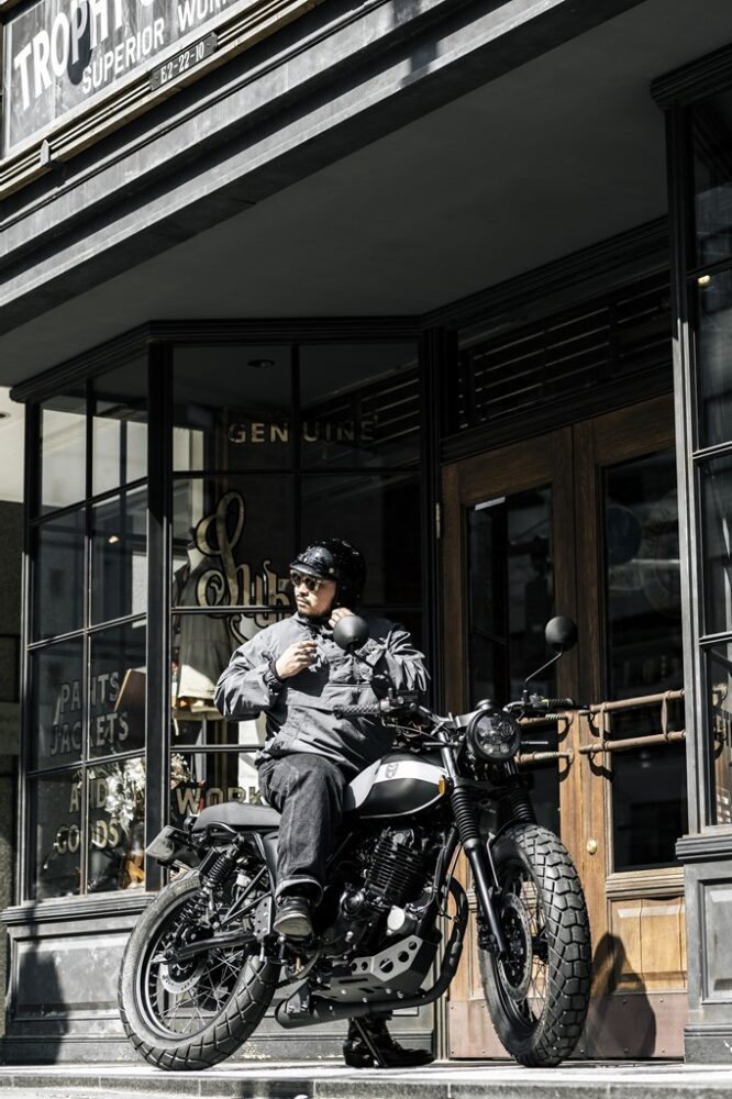 話題となっているマットモーターサイクルズのニューモデルを試してくれたのは、トロフィークロージングの若手スタッフである河野さん。ワークやミリタリーを中心としたヴィンテージクロージングをベースに、バイク乗りの視点で再構築する実力派ブランドの看板スタッフだけあって、20代ながらもハーレーのナックルに乗っている。そんな河野さんから見たGT‒SR250の第一印象は?