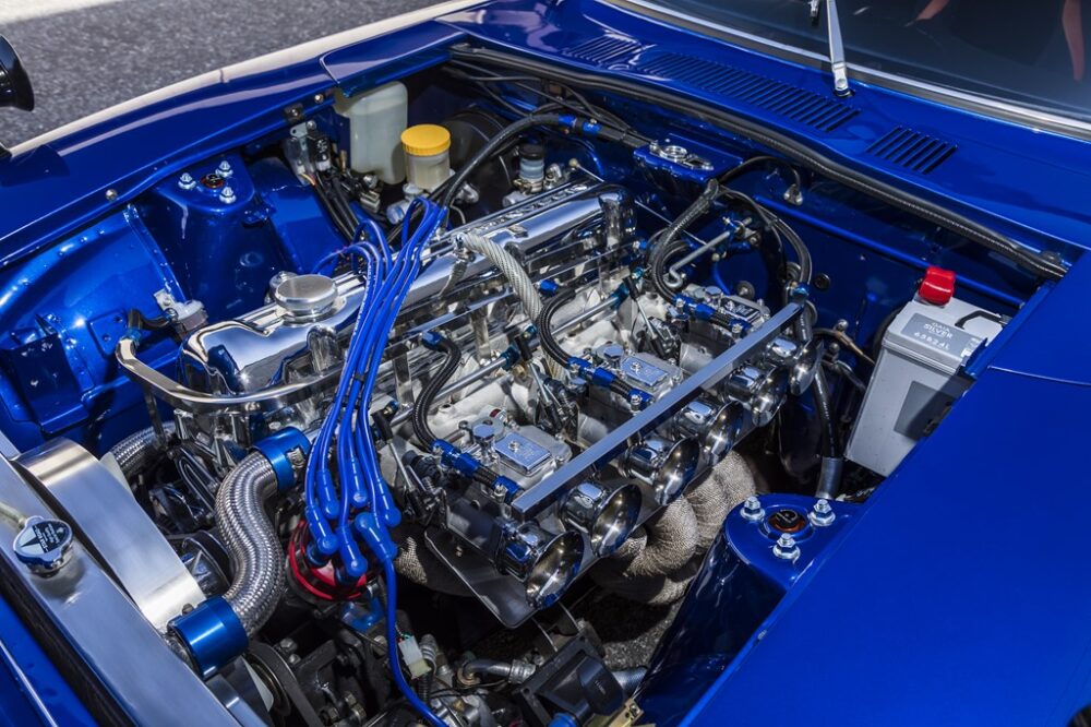 メッキパーツの美しい見た目に負けない、N42ブロックをベースにフルチューンしたL2.8改3.1Lのエンジン。吸気系はソレックス44φ