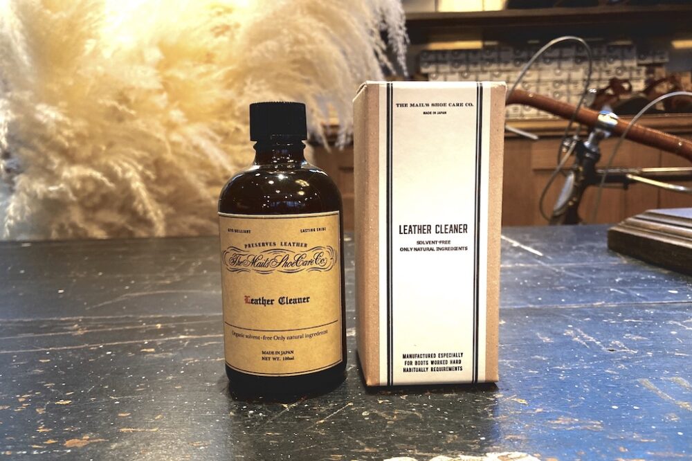 キレイな柔らかい布に取って、革の表面を優しく撫でるようにすることで汚れを拭き取るレザークリーナー。クリームを塗る前の準備段階で使用する。日本製。3300円