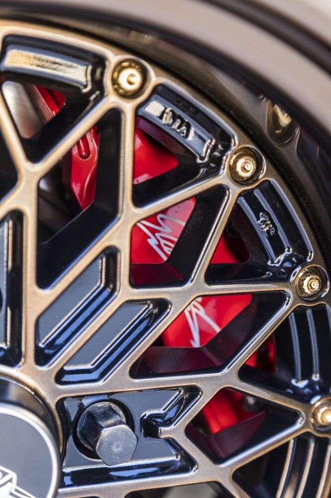 ホイールはスターロードオリジナルのGLOW STAR15インチで、ADVAN HFタイヤを履く。大型4podキャリパーのブレーキシステムもスターロードオリジナル。