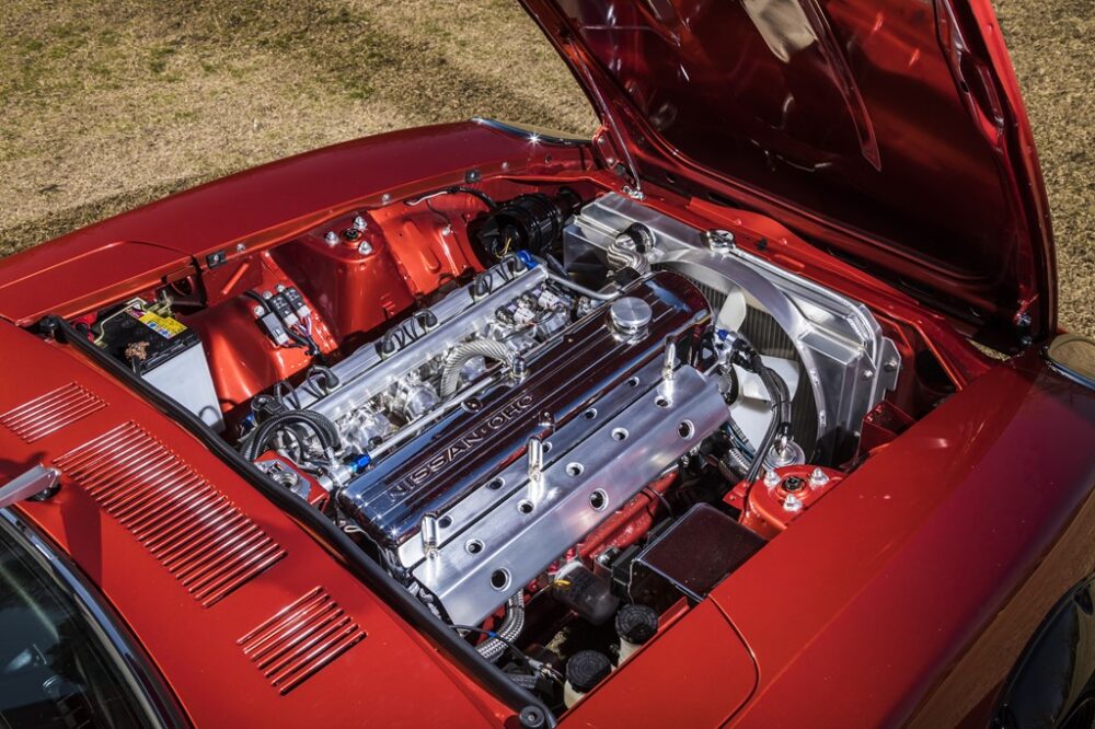 クロームが映えるエンジンはL28改3リッターを6連スロットルインジェクションで制御。アルミラジエターで冷却系も強化する。