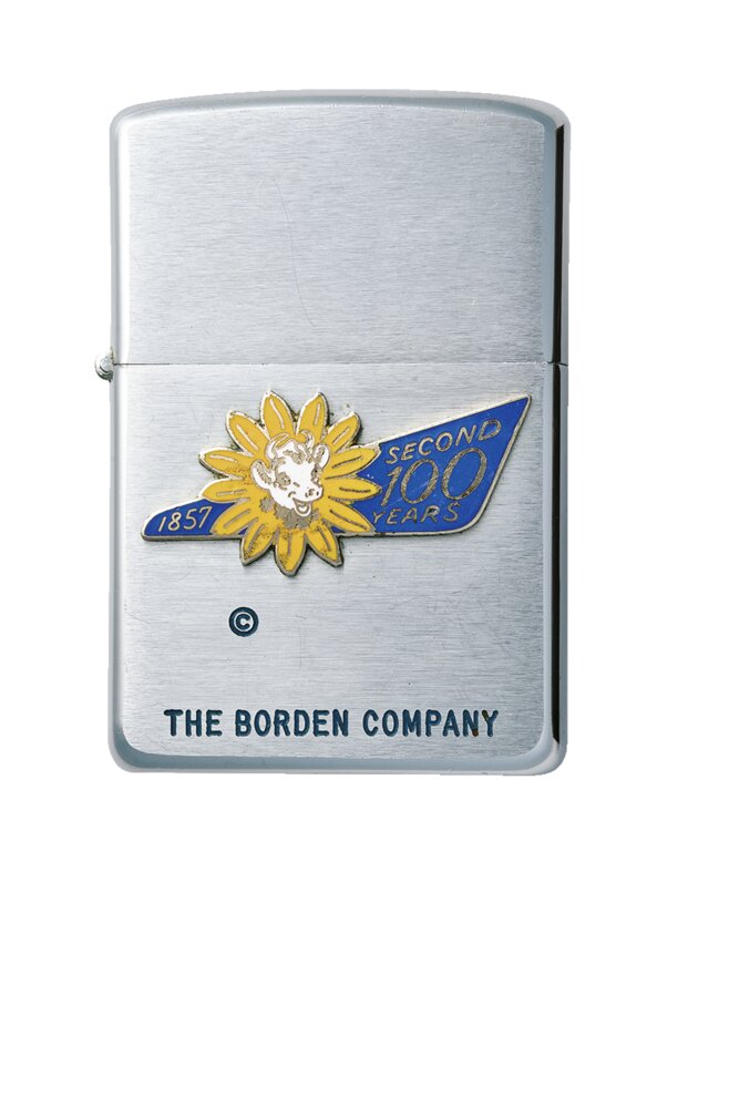 ベースはブラッシュクローム仕上げ、デザインはエッチング&ペイント加工、メタル付き。アイスの「レディボーデン」で知られるボーデン社創立100周年を記念して造られたレア品。3万8000円
