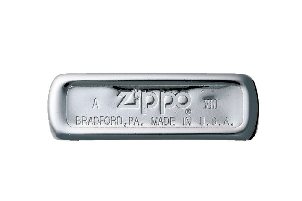 1933 ~’54がブロック体、’55~ ’79年が若干変遷があるがイタリック体、1980年以降はiの上に炎が入るZippoとなった。また、1958 ~’86年のモデルに関してはロゴマークの左右に刻印される「*」や「|」、「/」の数によって年代も判別できる。