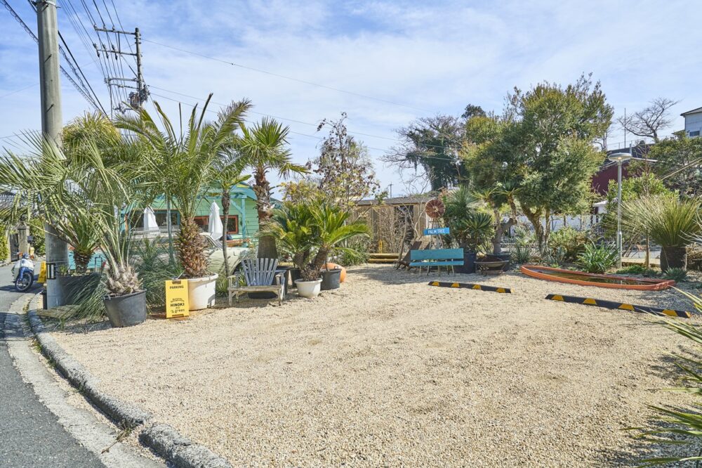休日、友人と温泉に行く途中通った道で見かけた今の場所に魅かれた。元解体工場。ヤシの木が1本だけある小高いこの場所で、「広い園芸店」をやりたくなった。幸運が後押しした。