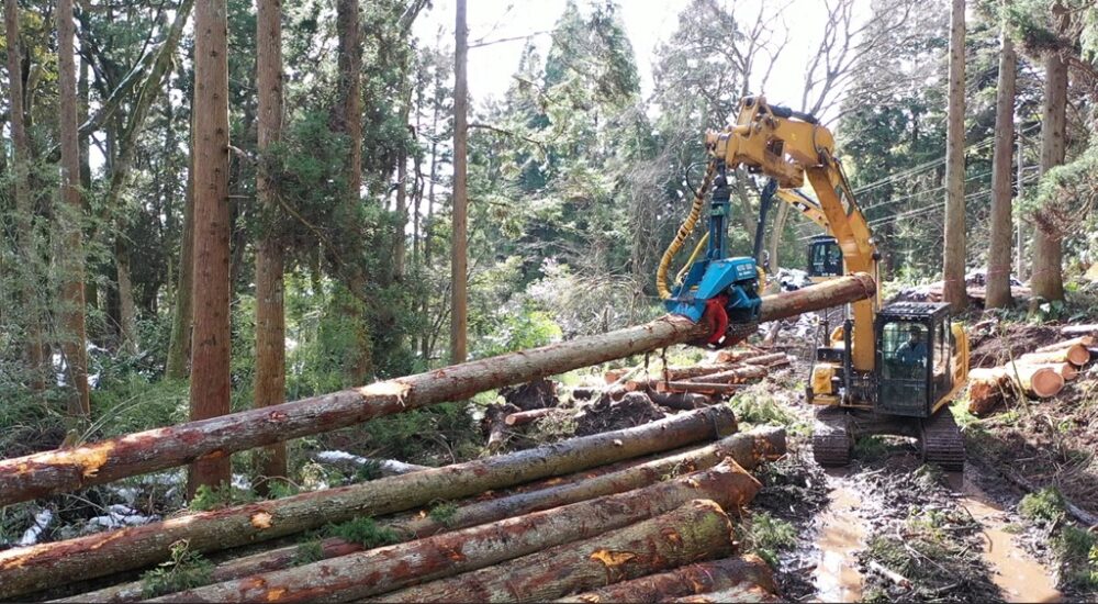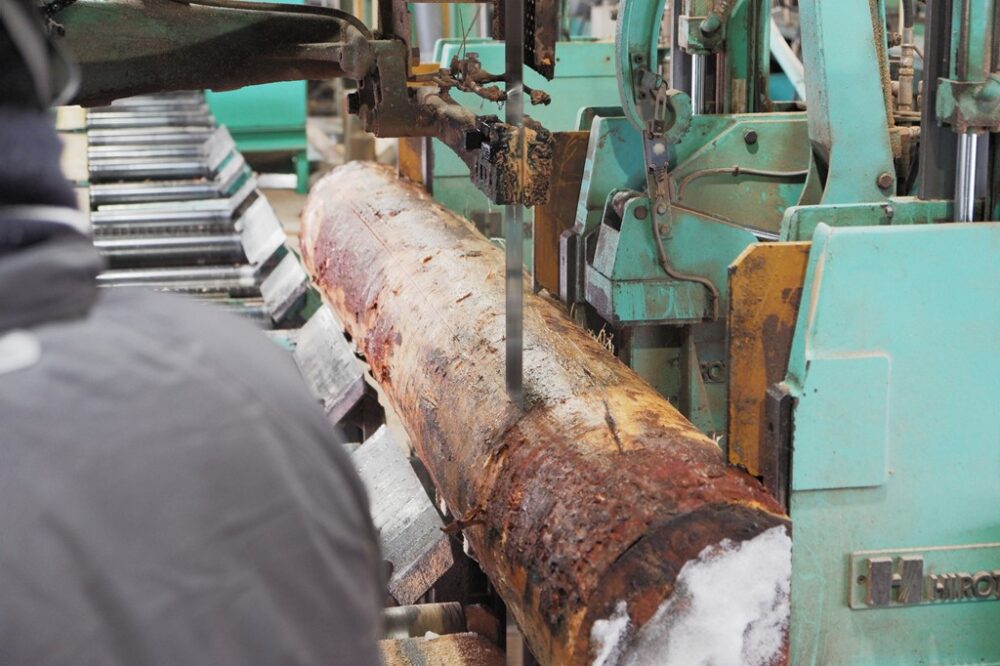 富山県氷見市、昔から漁業の盛んな街であり、漁船用の木材として氷見の木が使われていた歴史がある。いまでも富山県の約6割が氷見周辺の木が使われているそうだ。岸田木材は伐採した丸太を製材にして卸している会社で、丸太の皮を剥いて板材などに加工をしている。今回注目したのは、「ひみ里山杉」の皮。