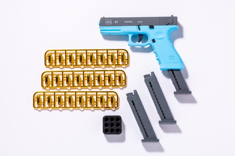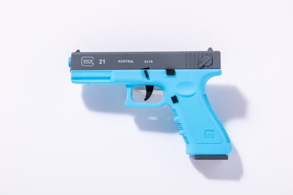 銃らしからぬ「水色」が斬新で、予想外に可愛らしい雰囲気のモデル。手に持った感じは非常に軽くて握り心地もいい。ギミックの動きもスムーズで、値段の割によくできている。2900円(amazon価格)