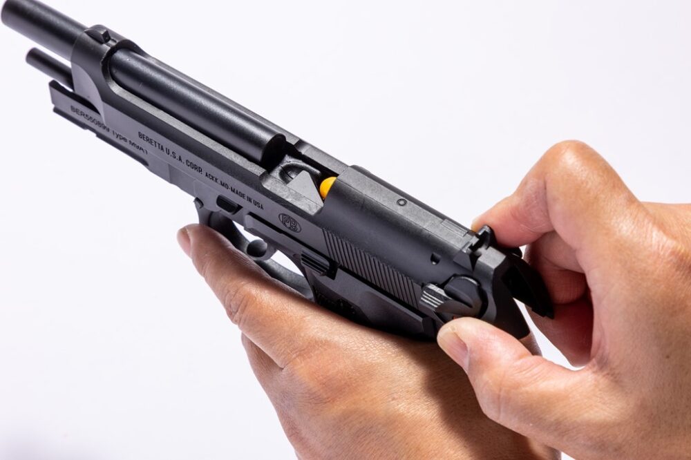 その最大の特徴は、弾を撃てないかわりに、薬きょうの排出とブローバックのプロセスを実際にシミュレートしたギミックを持っているということ。つまり、「弾を装填する」「薬きょうを排出する」という、“撃つ前”と“撃った後”のリアルな作動を楽しめるというモデルなのだ。
