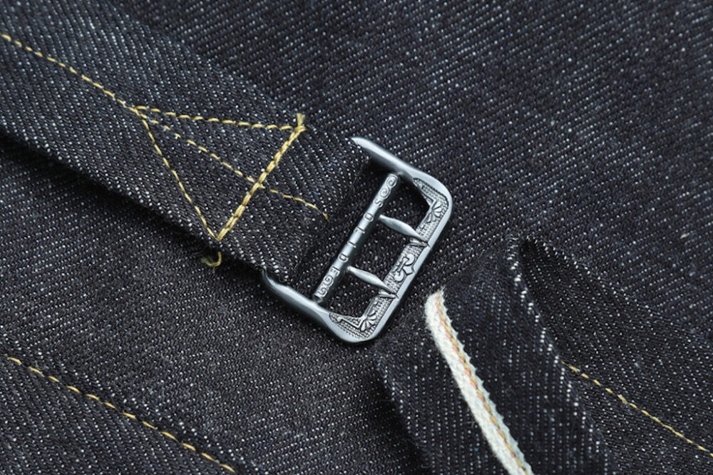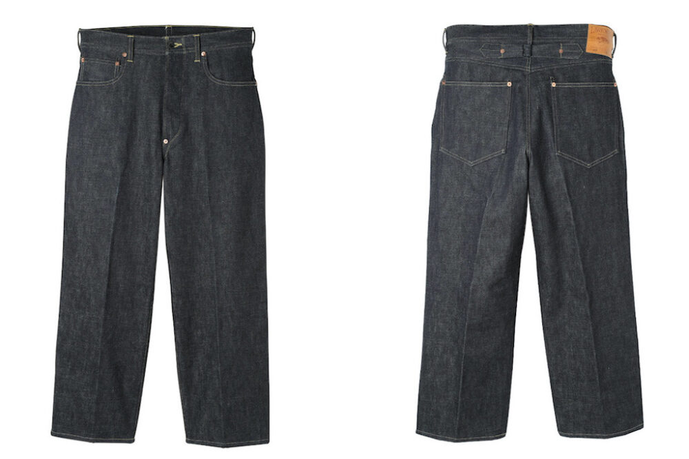 ブランド初となるワイドストレートの5ポケットパンツ。バックルバック仕様やむき出しリベットによるバックポケットなど、まだデニムパンツがワークウエアだったころのデザインをすっきりとしたデザインで仕上げている。生地はセルビッジ付きの13.5ozを採用する。縫製はすべてヴィンテージミシンを使った雰囲気のある仕上がり。3万9600円