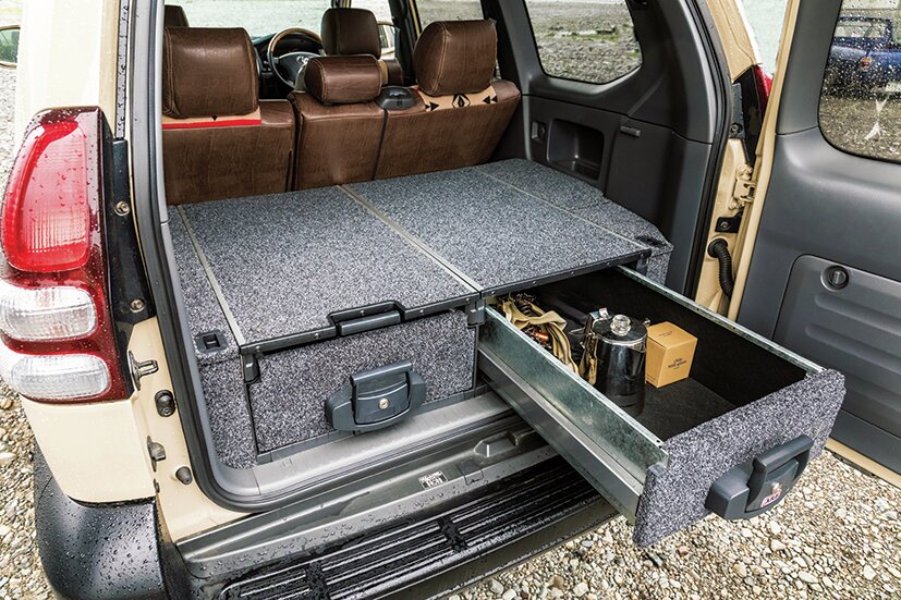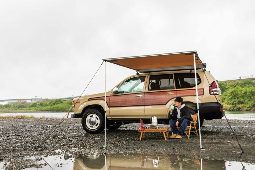 プレススタッフの鬼木さんは、これらカスタムカーを駆って全国のイベントを飛び回る日々を送りつつ、自身もキャンプを楽しんでいるアウトドア好き。休日には河川敷でコーヒータイムを楽しむことも多い。そんな相棒にこのクルマはピッタリと言うわけだ。