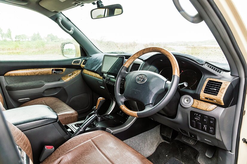 3代目となる120系ランドクルーザープラドは、2002年に登場。先代90系と比べて高剛性となったフレームに、多くの電子デバイスを採用し、乗り心地とオフロード性能を高次元で両立した高級SUVだ。とはいえすでに150系にモデルチェンジをしているため、型落ち感は否めない。